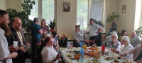 Po Mszy Św., modlitwami do bł. Anieli Salawy uczciliśmy Jej relikwie. Następnie ks. Krzysztof udzielił zebranym błogosławieństwa relikwiami patronki FZŚ w Polsce. Ubogaceni duchowo i pokrzepieni słowem Bożym udaliśmy się do kaplicy św. Leopolda Mandicia na projekcję filmu “Z nadmiaru Miłości“, który opowiada o życiu i duchowości bł. Anieli Salawy. Film w reżyserii: Ks. dr. Krzysztof Jan Gryz, odtwórczyni roli głównej - bł. Anieli Salawy: Siostra Marta Sieńska OFS . Po obejrzeniu filmu, uczestnicy spotkali się z twórcami filmu, by podzielić się swoimi refleksjami a także nabyciem materiałów dotyczących Błogosławionej oraz FZŚ. Po strawie duchowej nadszedł czas na wspólną agapę i braterskie rozmowy. Naszym gościom z całego serca dziękujemy za przybliżenie nam duchowości naszej Patronki, wspólną modlitwę i dzień przeżyty w duchu franciszkańskiej radości. Błogosławieństwem na rozesłanie zakończyło się spotkanie tercjarzy Regionu Olsztyńskiego